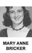| School records state that Mary Anne Bricker was adopted out of a London Orphanage by the Brickers. She was born in London and her parents were killed in the war bombings. Mr. Bricker worked for Lockheed. Mary Anne went to Bellermine in 53 and North Hollywood High in 54 before coming to Burroughs for her senior yr. After Burroughs it says she was going to Glendale College. | |
