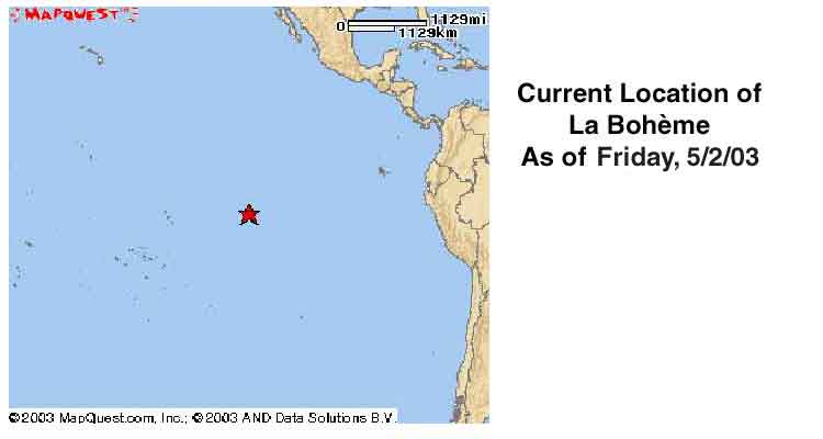 Our plan is to sail from Curacao to Aruba, then to Cartagena, Columbia. *** Change of plans. Going directly to Cartagena. ****** From there to the San Blas Islands and through the Panama Canal. We will stop at Panama City to change crew and provision. I understand that Balboa, Panama is a good place to stop and provision. They have Cosco there. From Panama we will sail to The Galapagos, and then the big leg is from there to the Marquesas (approx. 3,000 miles). From there on to Tahiti where we will put the boat on the hard and fly home. We hope to be home by the end of May so that Lee can go to his 45th class reunion at Princeton.