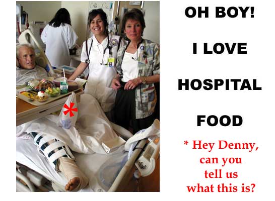I just spoke to Rowlene and called Denny in the Hospital. That's right, he's still in there. He was all packed and ready to leave when they told him his blood test showed a KIDNEY INFECTION. The Doc. thought it was a lab mistake and sent in another sample only to find out it was worse. Thank goodness he was still in the hospital and this Kidney Infection was caught in it's early stages.