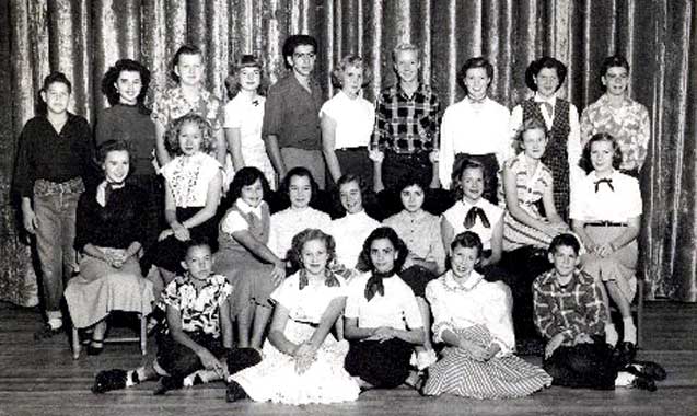 Top Row Jack Kendall, Betty Sanz, ???,???, Ron Geraci, Carol Wildman, Bill Knight, Norma Steeples, ???, John Dondanville, Middle Row ???, Carol Gratsos, Marion Aldridge, Linda Schofield, Sheila Berchin, Roberta D'Aloia, ???, Joan Peden, Barbara Gruener, Front Row Phil Bills, ???, Audrey Chotiner, ???, Ron Frazier ![]()