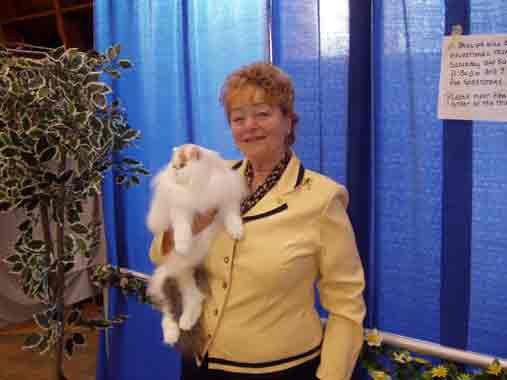 Susan's White Persian Cat Wins BEST OF SHOW at the Eugene Oregon, Fair Grounds on March 14, 2004. Carolyn Muscorella Maitland and Sonny Hothian Tromel were with Susan.